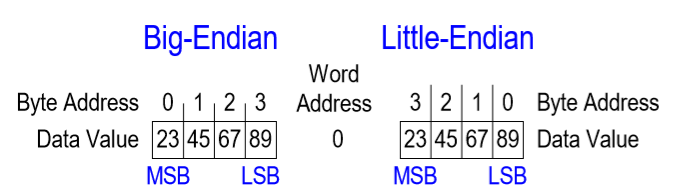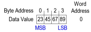 위의 사진은 빅 엔디안 시스템이다. MSB에서 LSB로 주소가 증가하기 때문이다. 리틀엔디안 시스템은 LSB에서 MSB로 주소가 증가함으로 89, 67, 45, 23순서이다. 즉 2번 주소는 45이다.