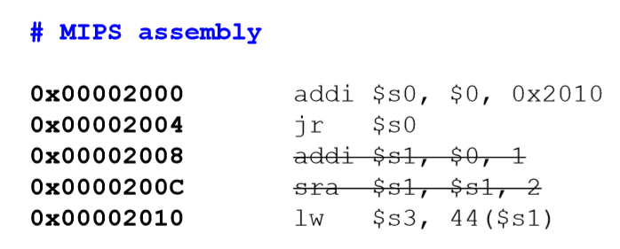 따라서 사이에 있는 addi와 sra명령어를 수행하지 않는다.