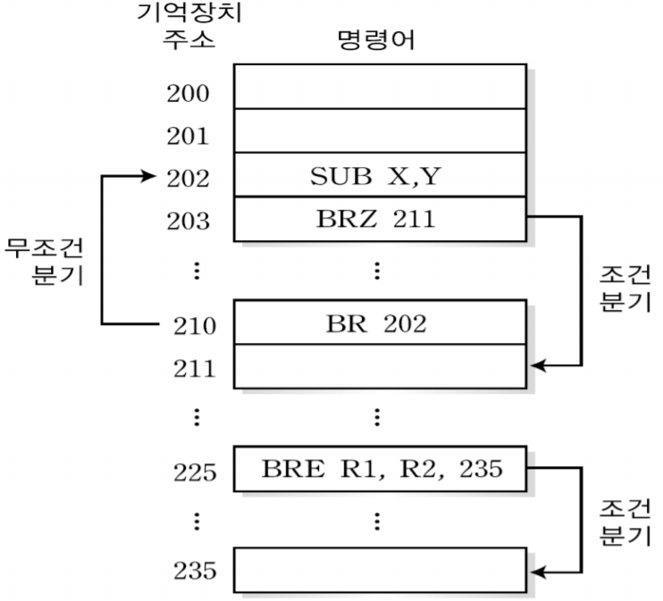 Jump타입으로 1개의 피연산자(오퍼랜드) addr를 가진다. 이는 주소 피연산자이다.