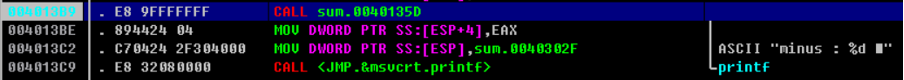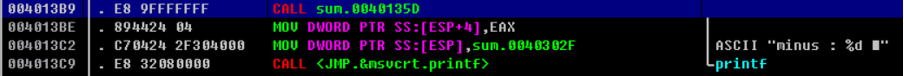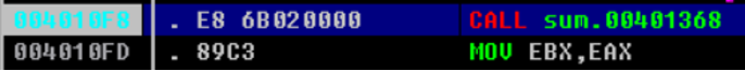 EAX 값은 100에서 1까지를 더한 13BA(10진수로 5050)가 되어있는 것을 확인할 수 있다.